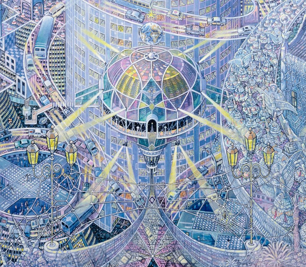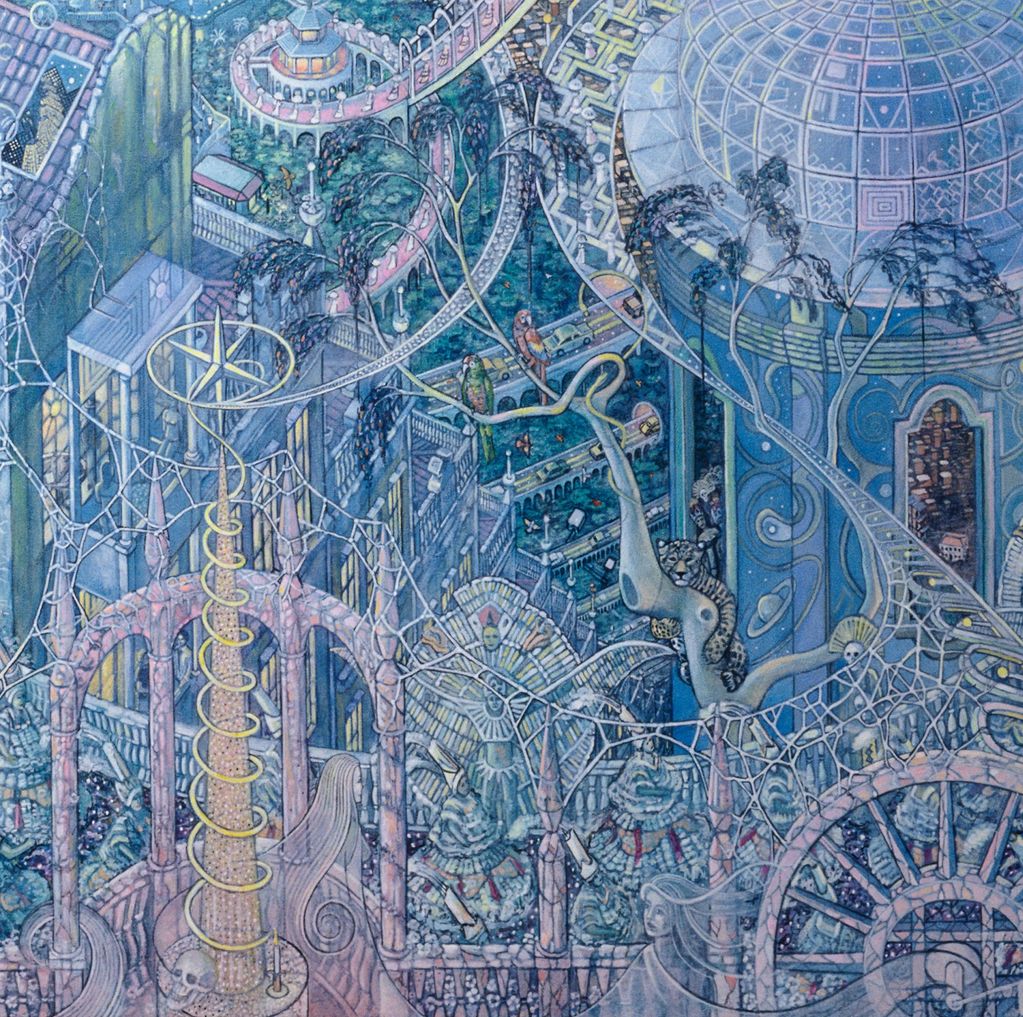 Detail Left: Star formations rest on the role of dice, clouds transform into angels and spirits as butterflies wings flap trigger fresh realities.
